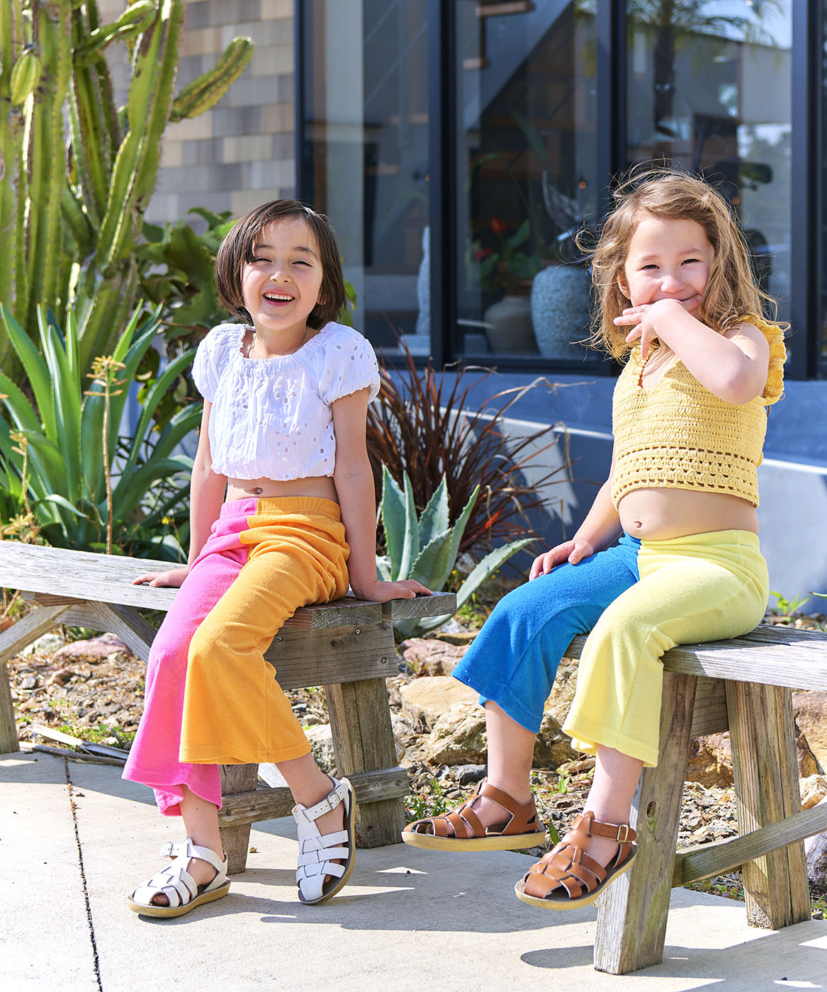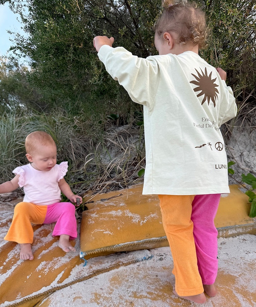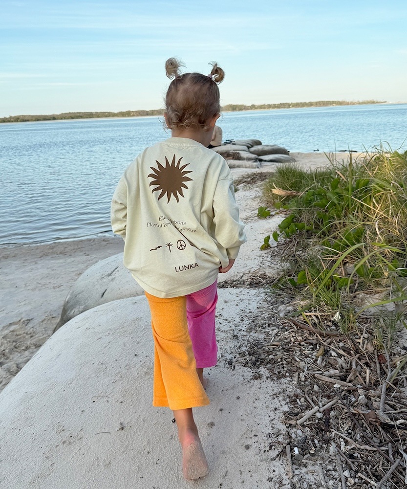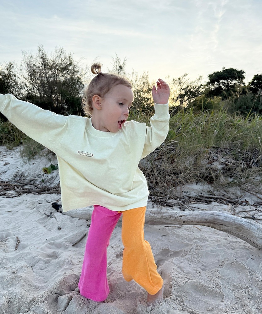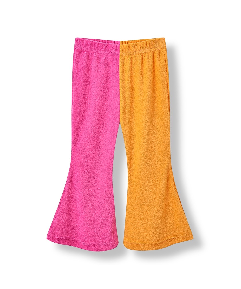 目を惹くバイカラーの配色が楽しい、フレアシルエットのテリーパンツ。左右で異なる色合いが、子どもたちの自由な感性にぴったりマッチ。動きやすくてお手入れも簡単なテリー素材だから、たくさん遊んで、たくさん笑って、たくさん着てほしい。ナチュラルなカジュアルスタイルにひとさじのスパイスを。