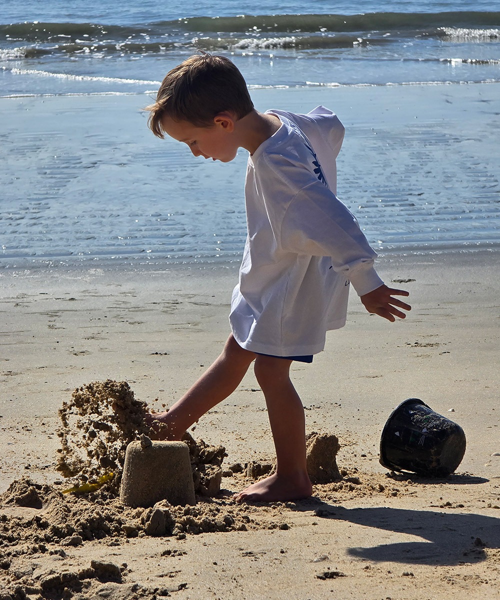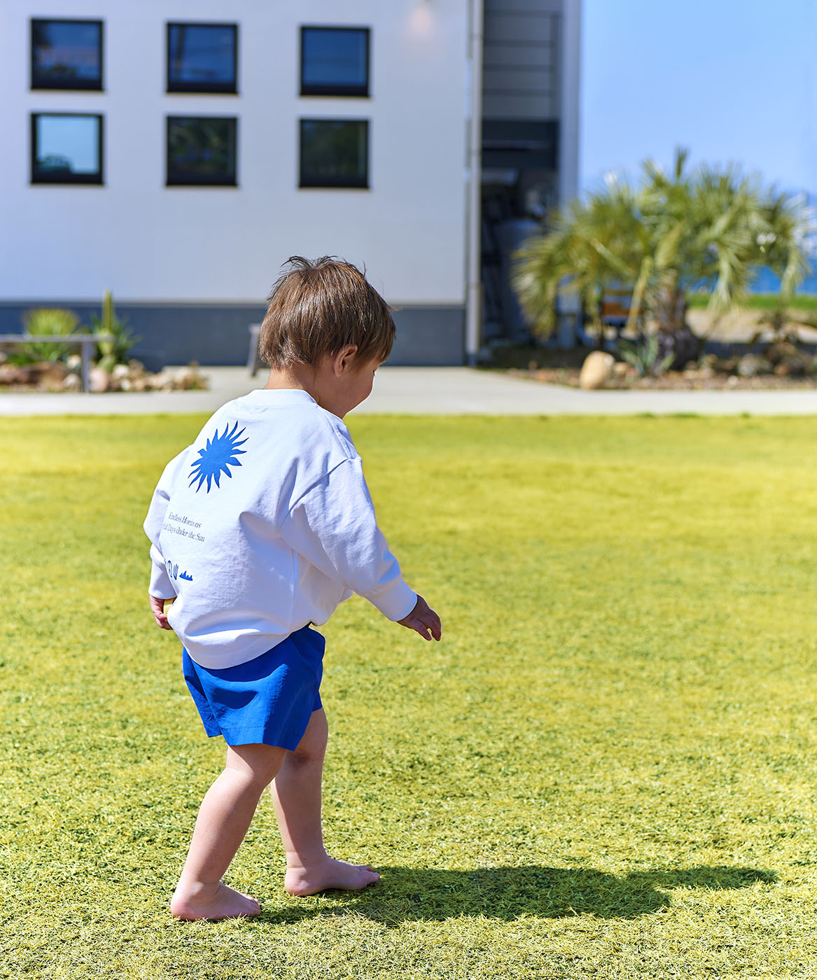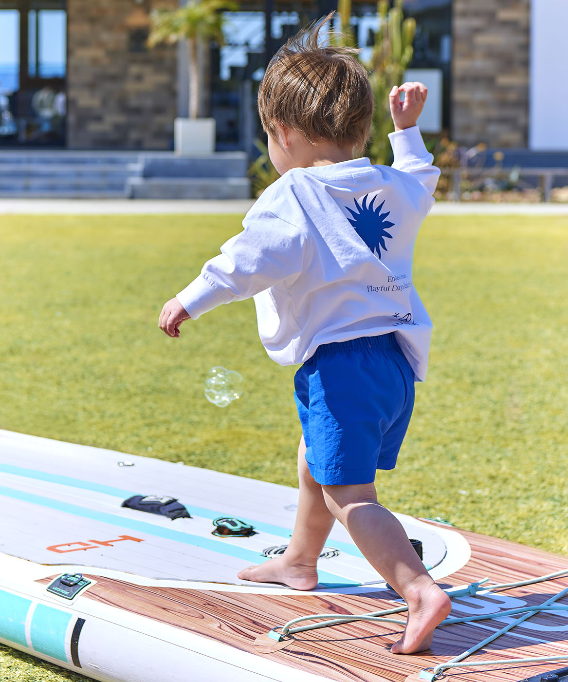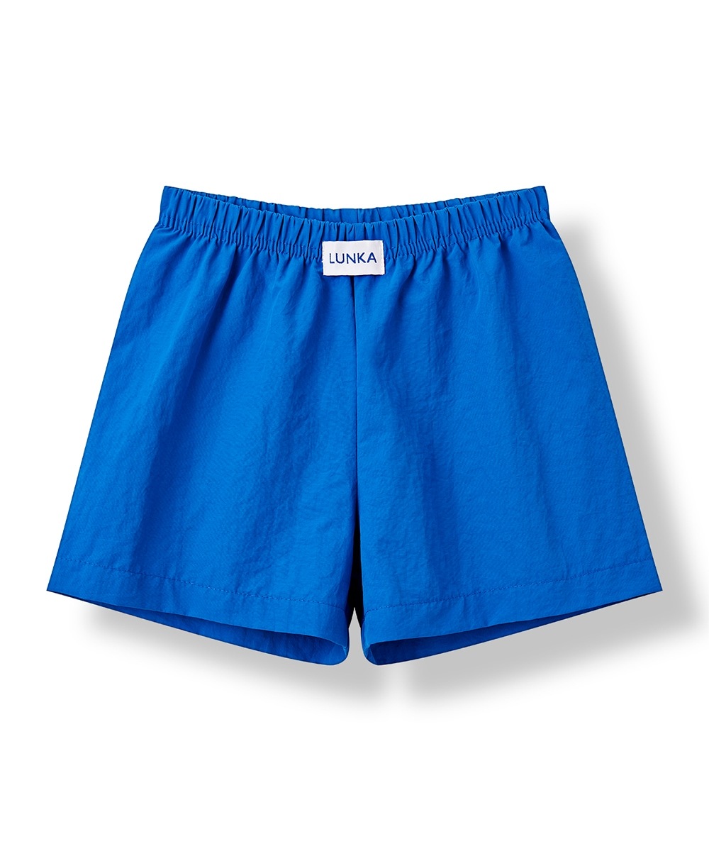トレンドのボクサーシルエットをナイロン素材で軽やかに仕上げたショートパンツ。水をはじいてすぐ乾くので、海でも公園でも大活躍。フロントにはLUNKAのタグ付きで、Tシャツやトップスの裾からロゴをチラ見せするのもおすすめ。カラフルなトップスとのレイヤードコーデで、夏の冒険スタイルを完成させよう。