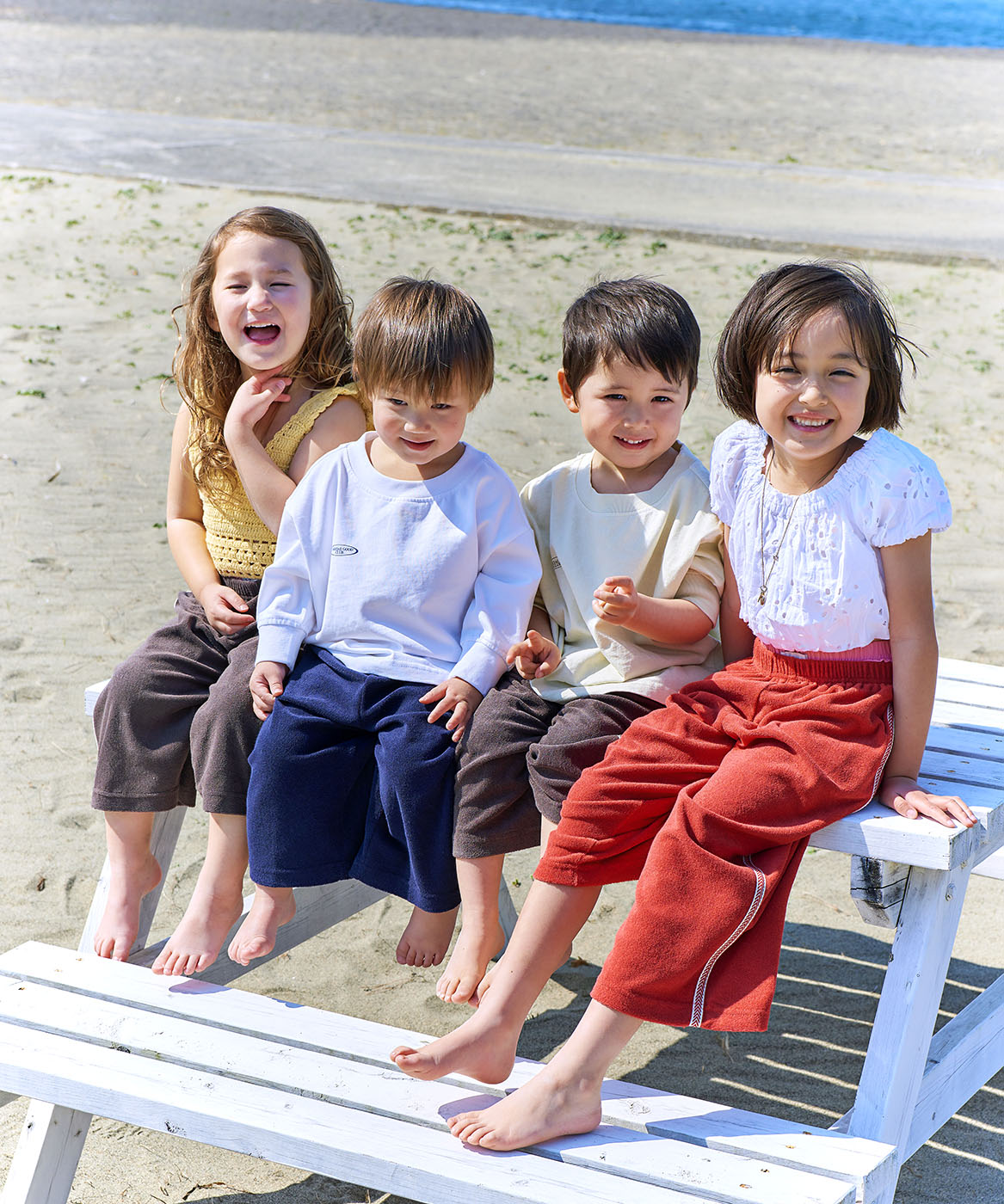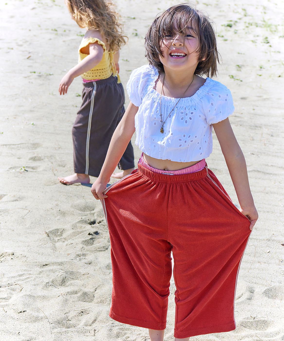 ゆったりとした風を感じる、テリー素材のワイドパンツ。両サイドにあしらわれた刺繍ラインテープが、シンプルながらも個性をプラスします。さらっとした肌ざわりで動きやすく、おうちでもお出かけでも大活躍。おしゃれ見えするのに、着心地はリラックスそのもの。ユニセックスで兄弟姉妹のおそろいコーデにもおすすめです。