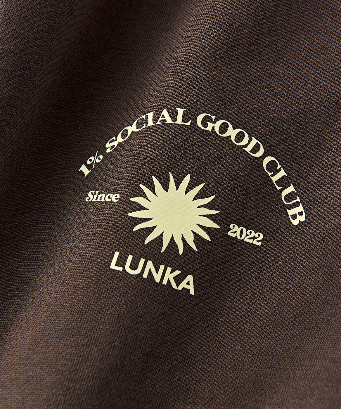 LUNKAのブランドコンセプト「Endless Horizons: Playful Days Under the Sun」を大胆にプリントした、スウェットパンツ。広がりすぎないワイドシルエットがポイント。トップスとのセットアップもおすすめです。