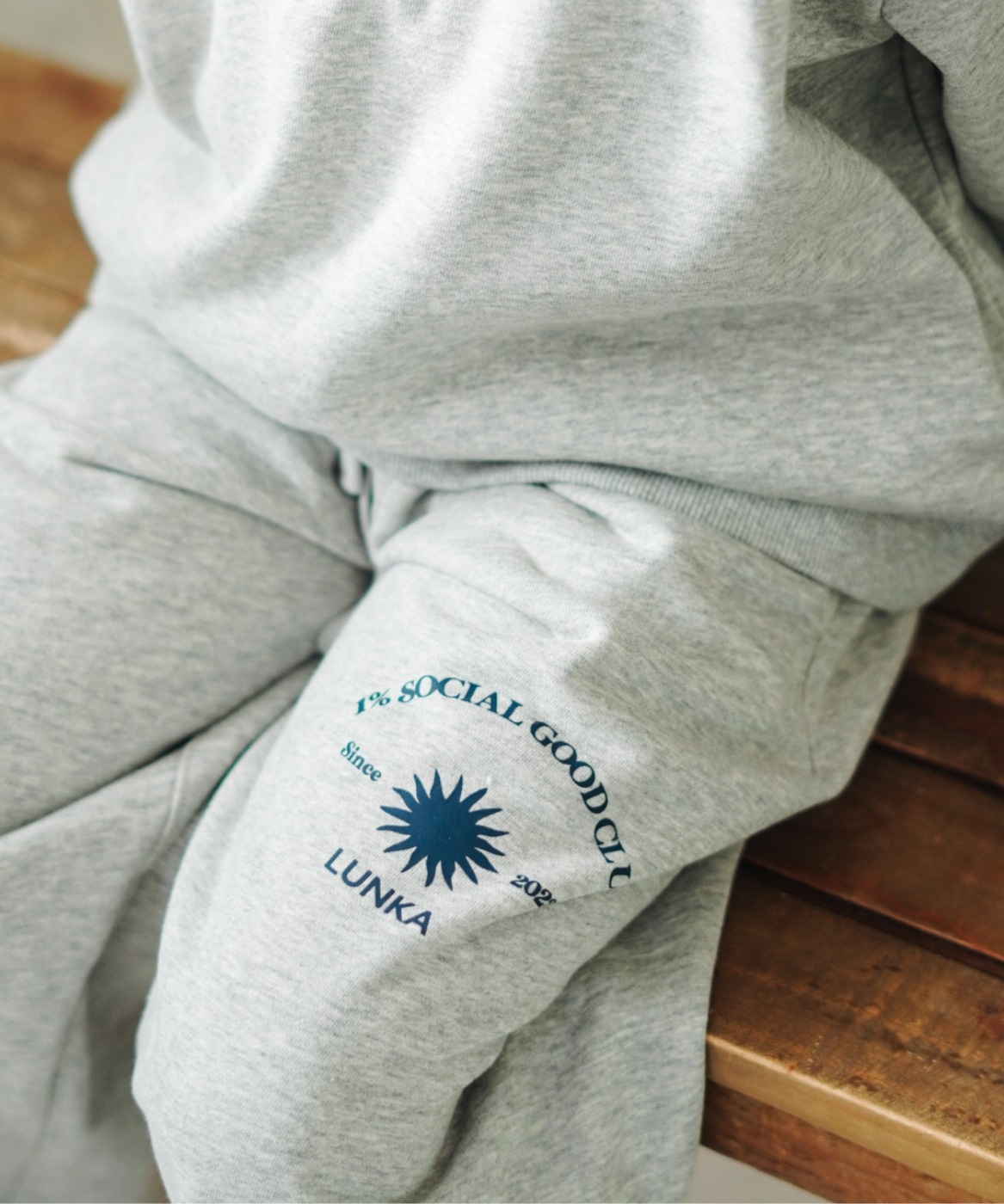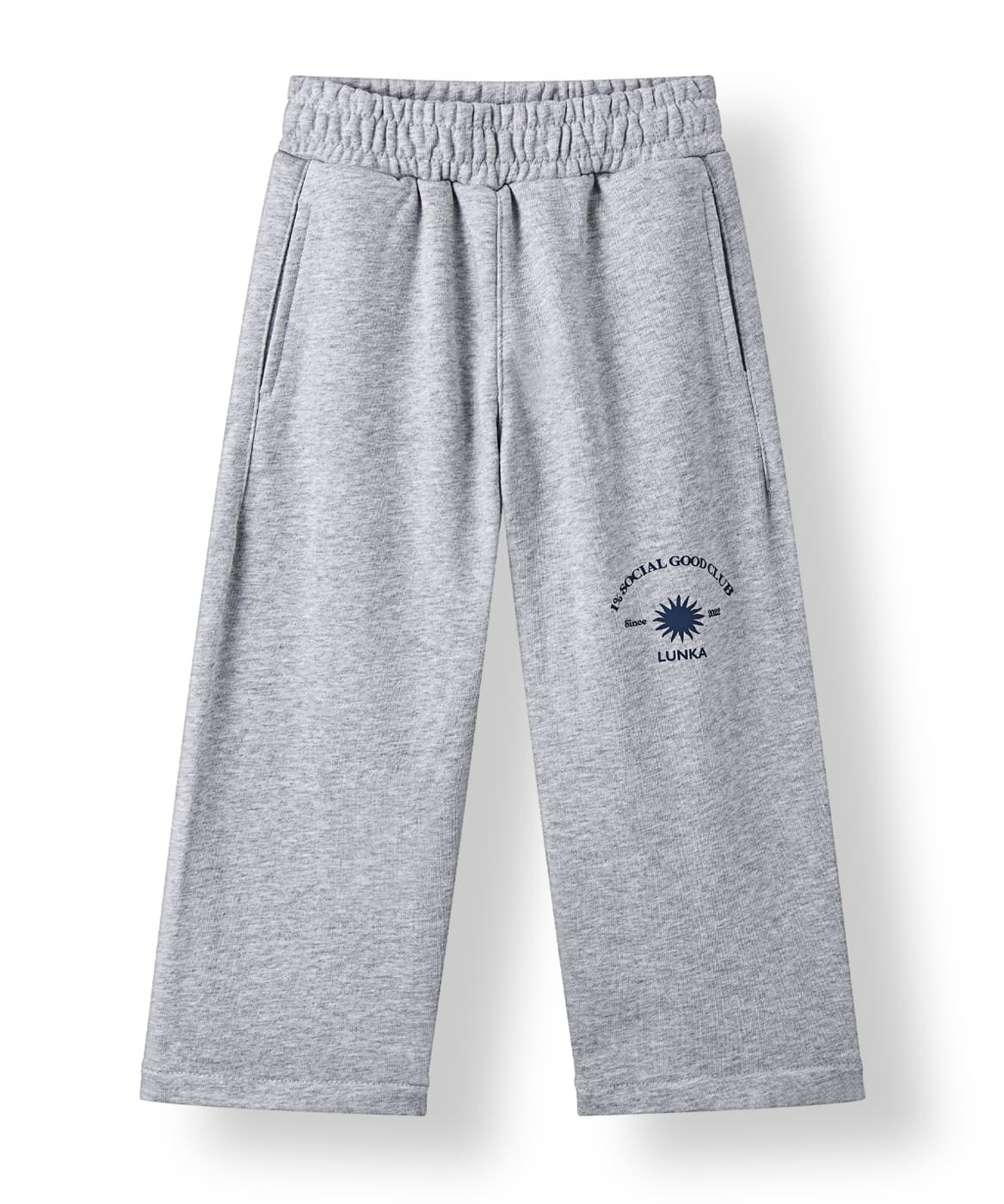 LUNKAのブランドコンセプト「Endless Horizons: Playful Days Under the Sun」を大胆にプリントした、スウェットパンツ。広がりすぎないワイドシルエットがポイント。トップスとのセットアップもおすすめです。