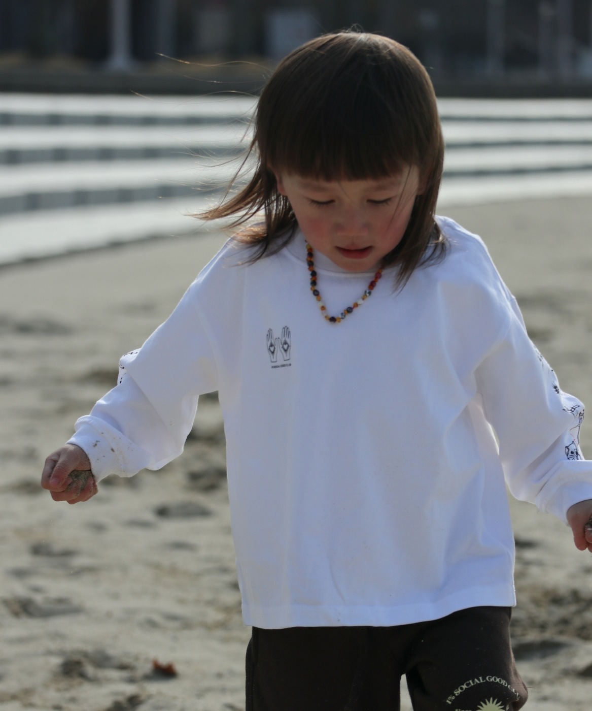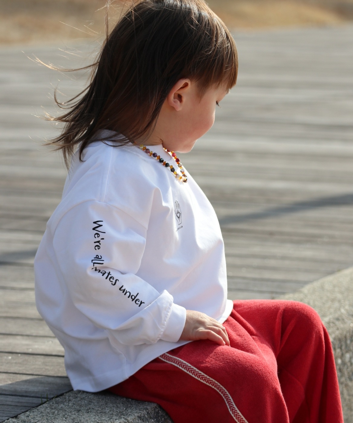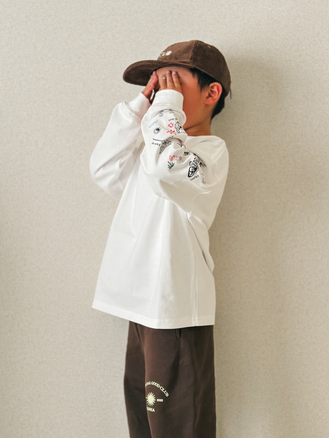 【LUNKA】OZ Sleeve Print Long T-Shirt(Kids) White