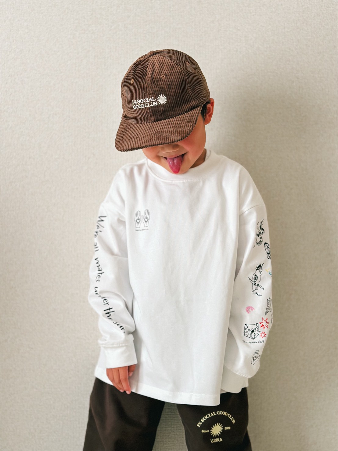 兄弟姉妹でのリンクコーデはもちろん、パパ・ママも一緒に着られる豊富なサイズバリエーション。家族全員が同じグラフィックを身に纏うことで、いつものお出かけが少し特別な時間に変わります。