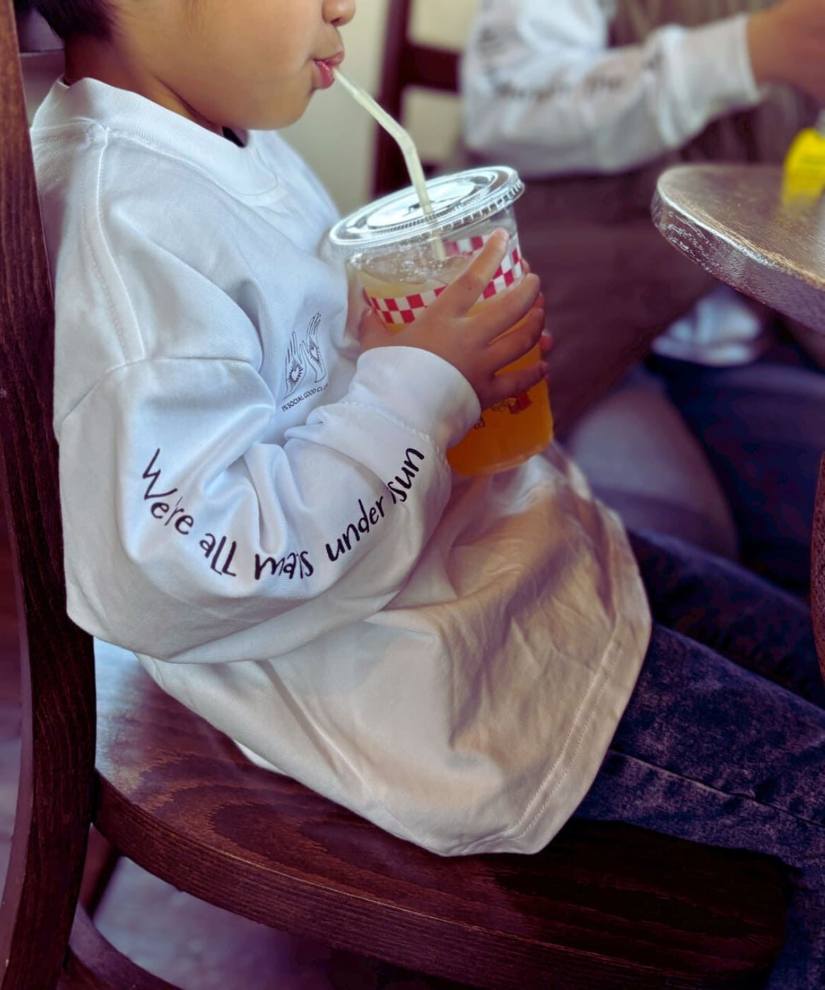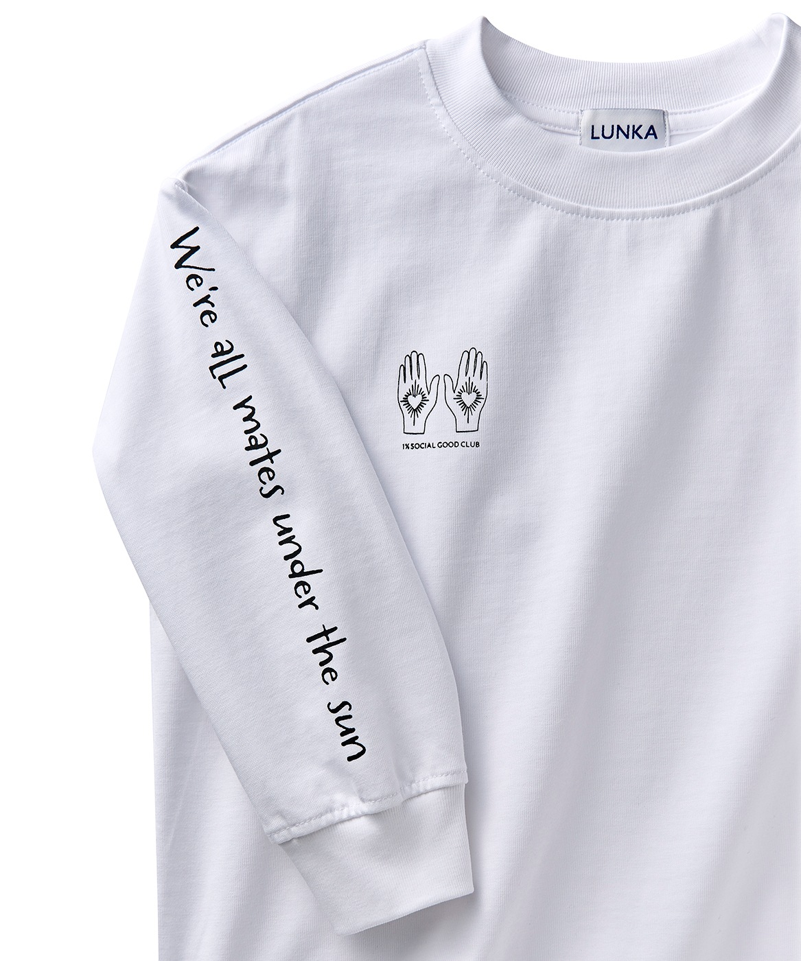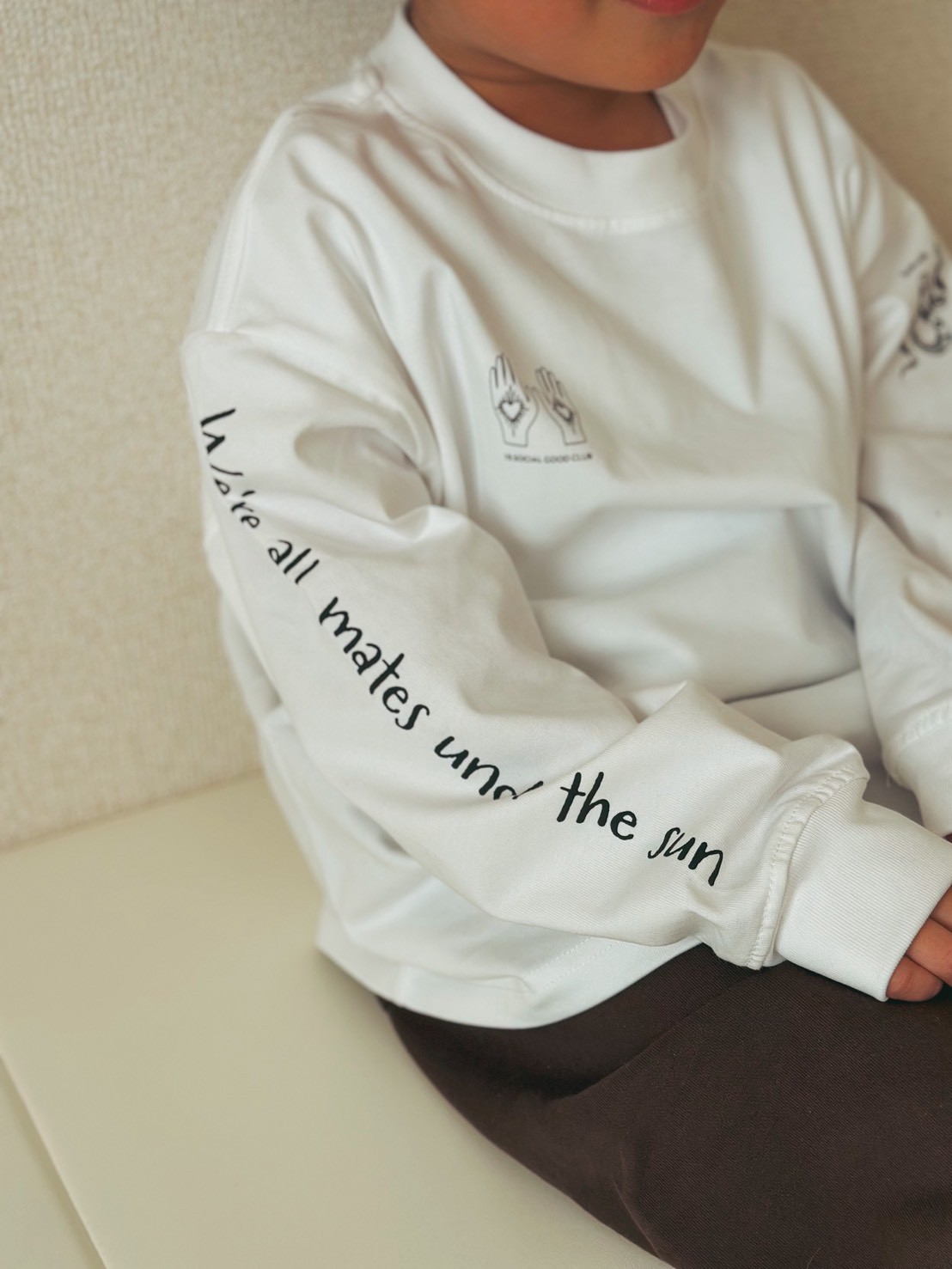 反対の袖に刻んだのは、<We're all mates under the sun> というメッセージ。