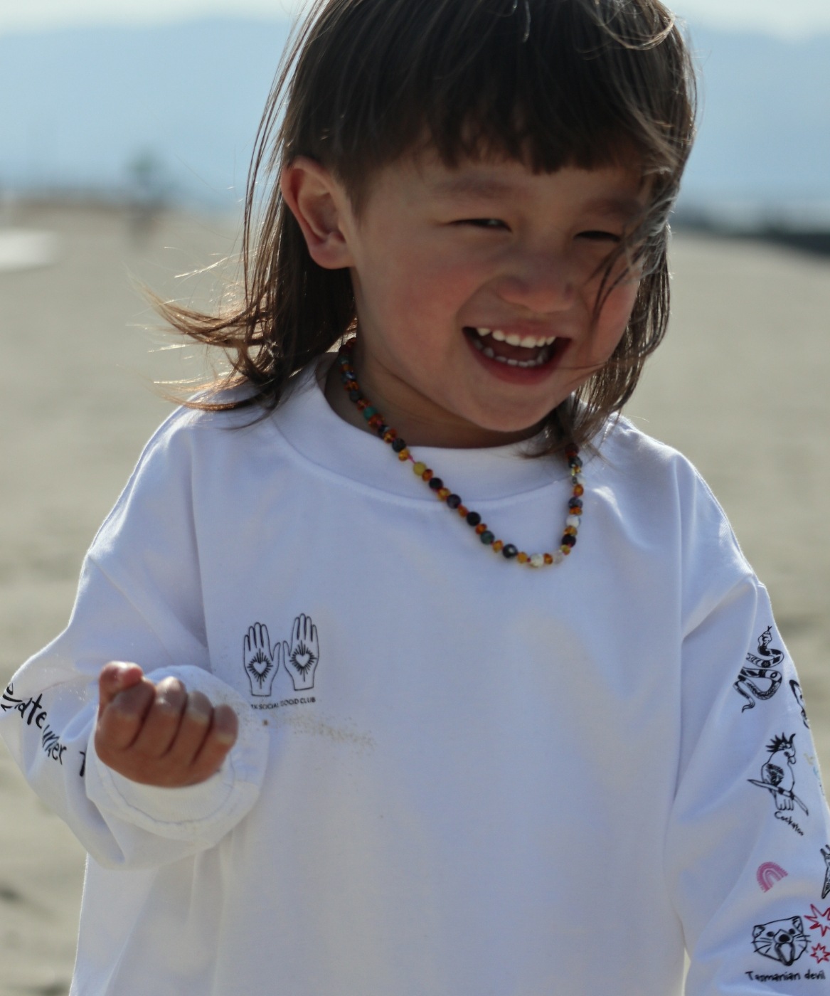 このアイテムは私たちジャクソンが取り組むサステナビリティアクション、1パーセントのソーシャルグッド活動のチームTシャツをイメージしてデザインしました。<1% SOCIAL GOOD CLUB>は、「1%のチカラが、未来を変えるかもしれない」という想いからスタートしたプロジェクトです。 売上数量の1%に相当する稚魚の放流や、社長も含めた全社員の総労働時間の1%を、水辺や海の清掃、放流活動といった環境保護にあてる取り組みを行っています。 たとえ小さなことでも、私たちにできることから行動を。 このTシャツを通じて、この活動に共感し、親子で自然や環境について考えるきっかけになってもらえたら嬉しいです。