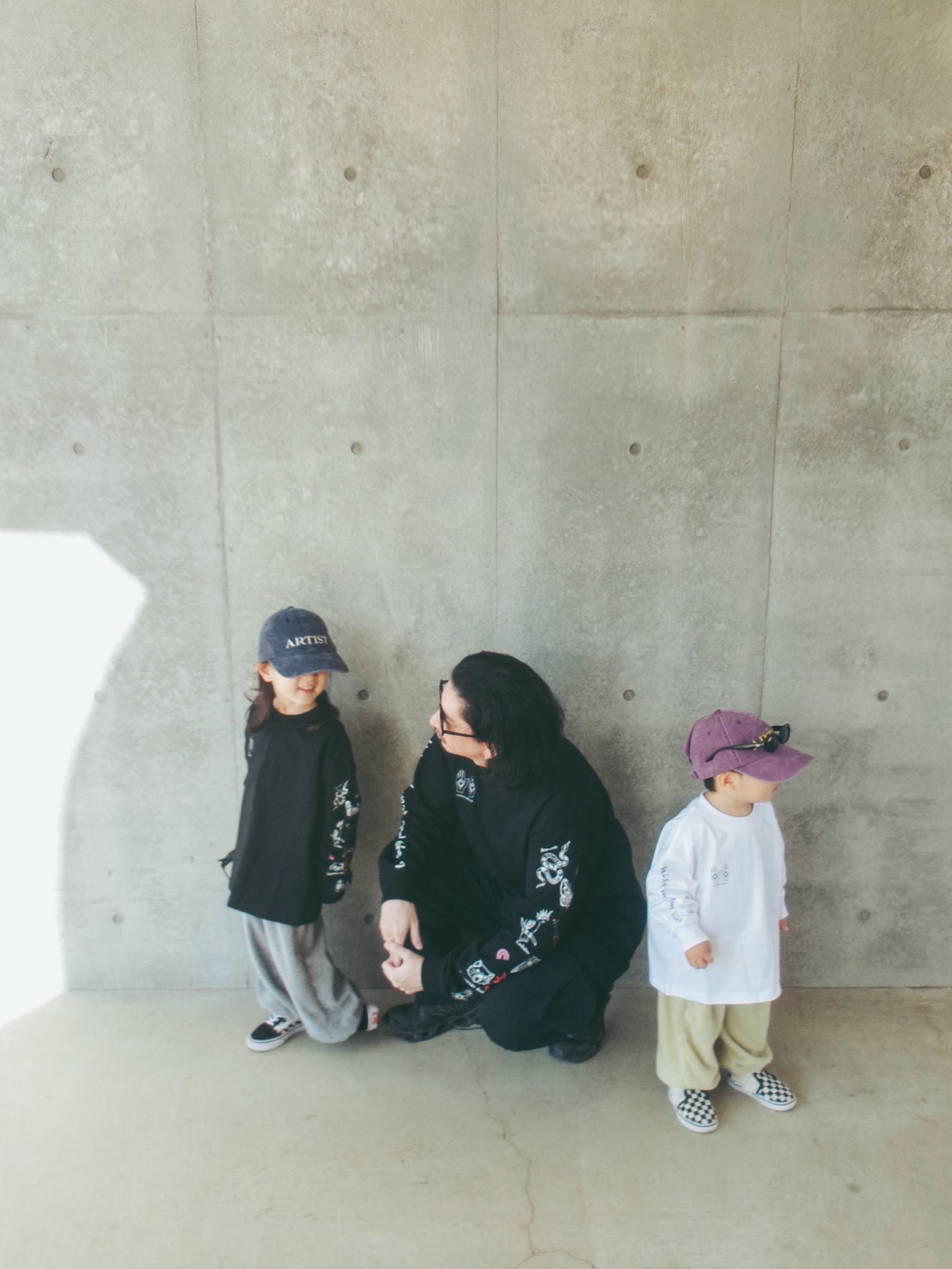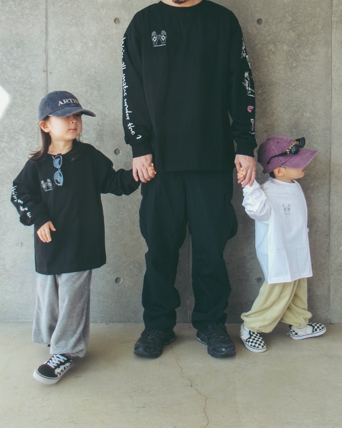 兄弟姉妹でのリンクコーデはもちろん、パパ・ママも一緒に着られる豊富なサイズバリエーション。家族全員が同じグラフィックを身に纏うことで、いつものお出かけが少し特別な時間に変わります。