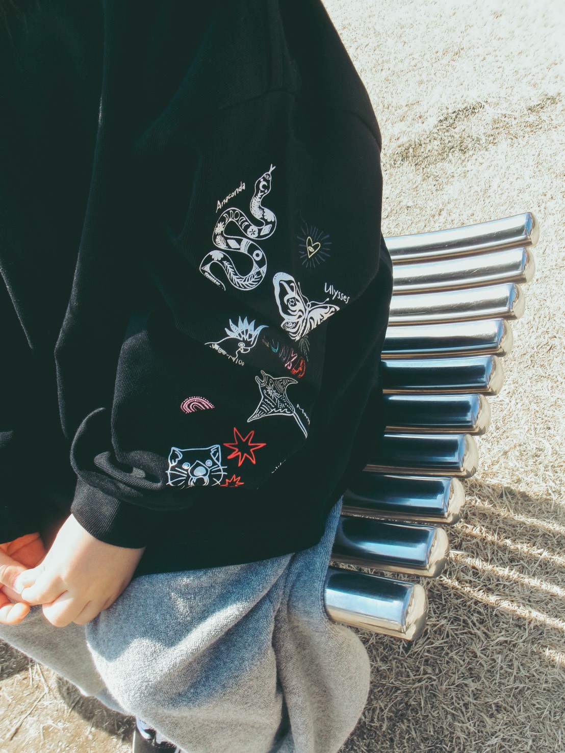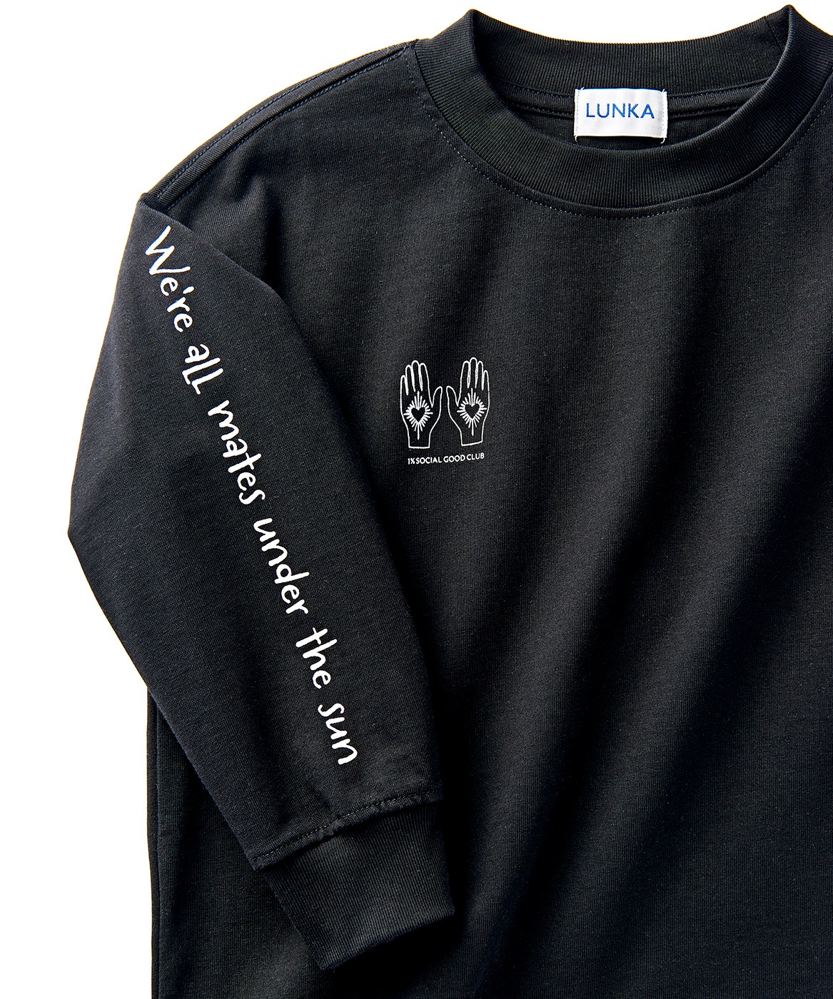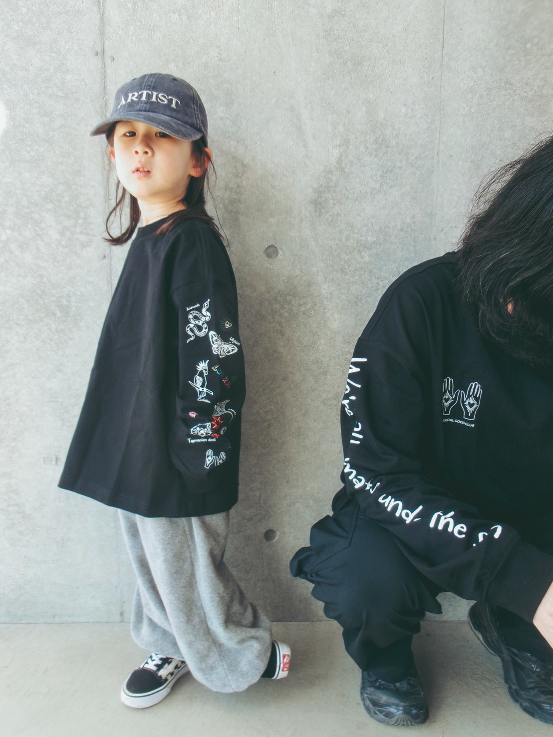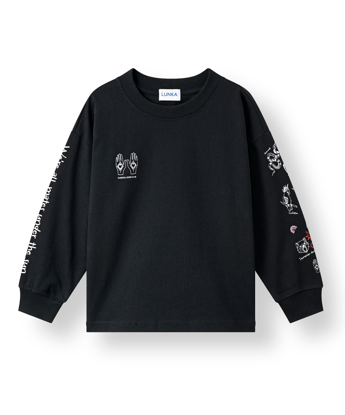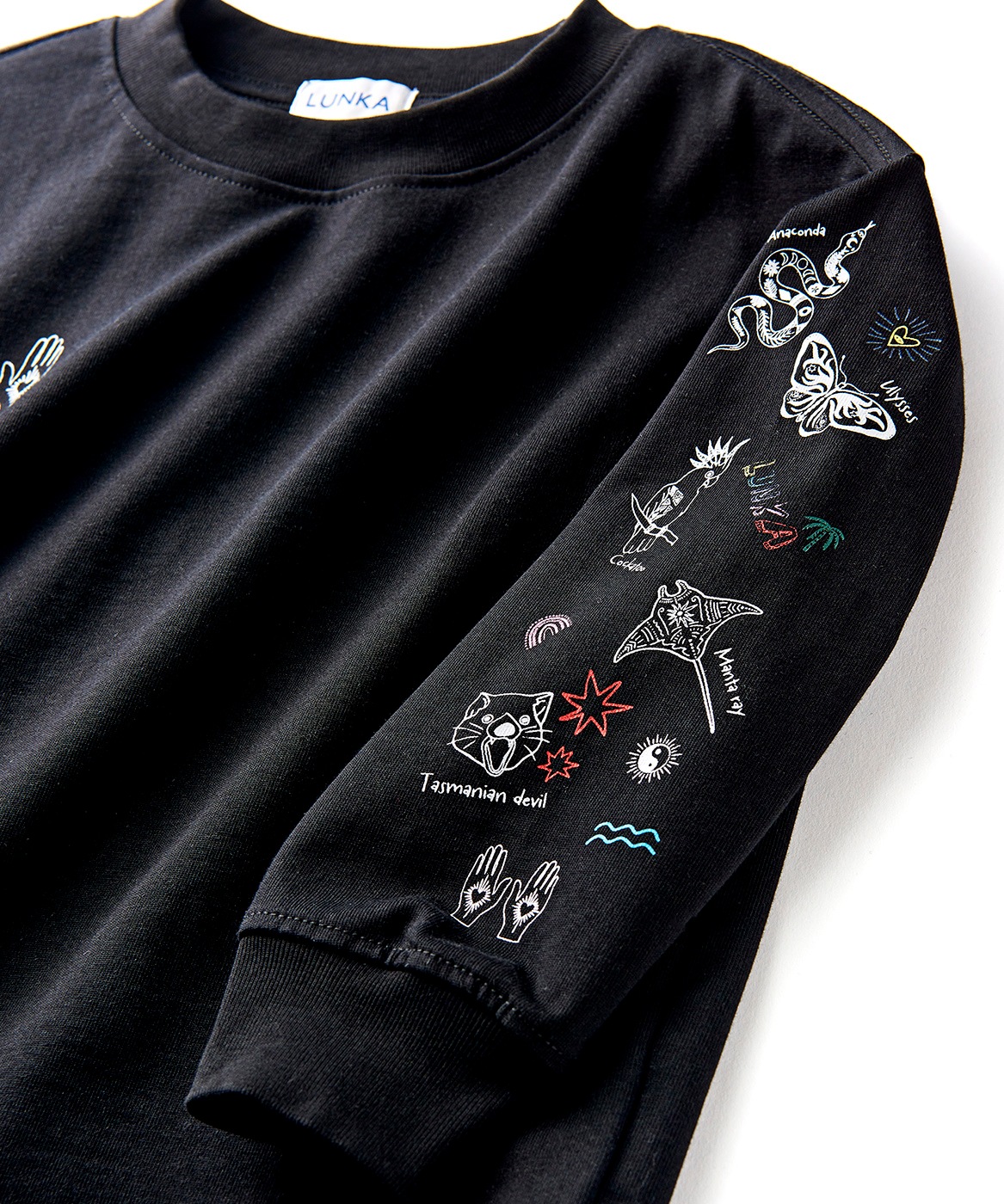 【LUNKA】OZ Sleeve Print Long T-Shirt(Kids) Black