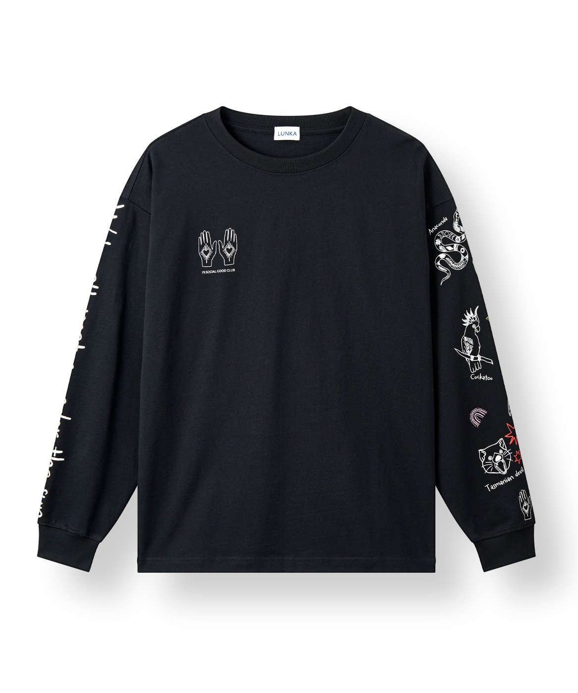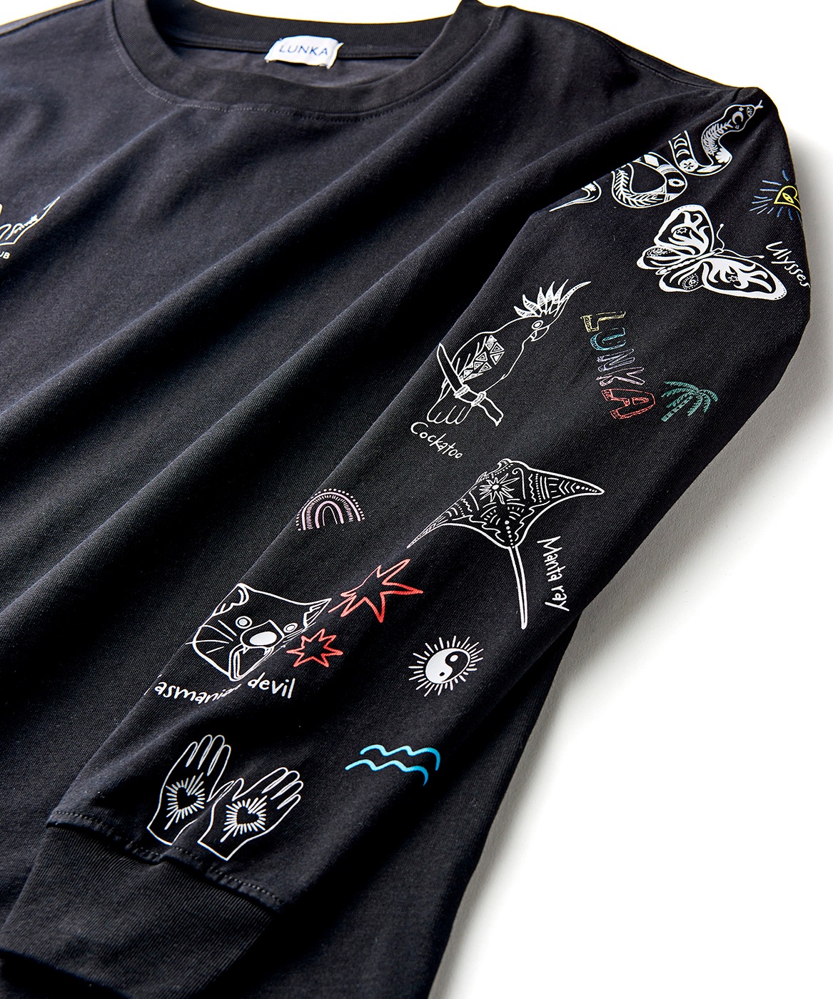 【LUNKA】OZ Sleeve Print Long T-Shirt(Adult) Black